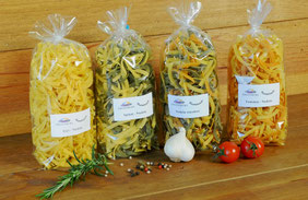 Die Teigwaren werden in der Bauernküche aus Eiern von glücklichen Hühnern hergestellt. Es gibt sie Natur, mit Tomaten- oder Spinataroma. Neu sind die Tricolor Teigwaren im Säckli. Alle Teigwaren eignen sich sehr gut zum „al dente„ kochen.
